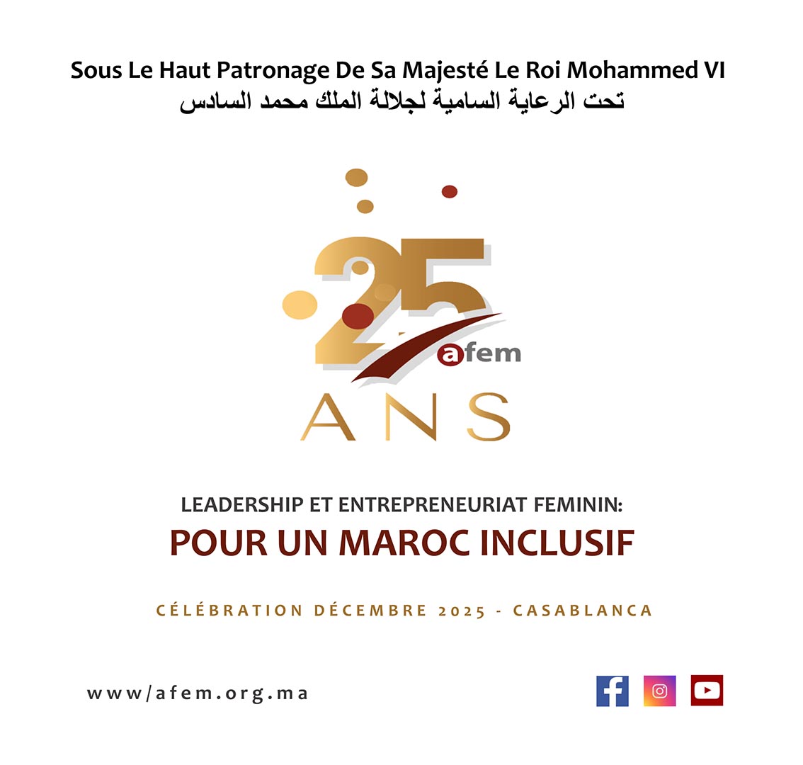 L’Association des Femmes Cheffes d’Entreprises du Maroc (AFEM) célèbre, le 5 décembre 2025, son 25ᵉ anniversaire, marquant un quart de siècle d’engagement indéfectible en faveur du développement de l’entrepreneuriat féminin au Maroc.