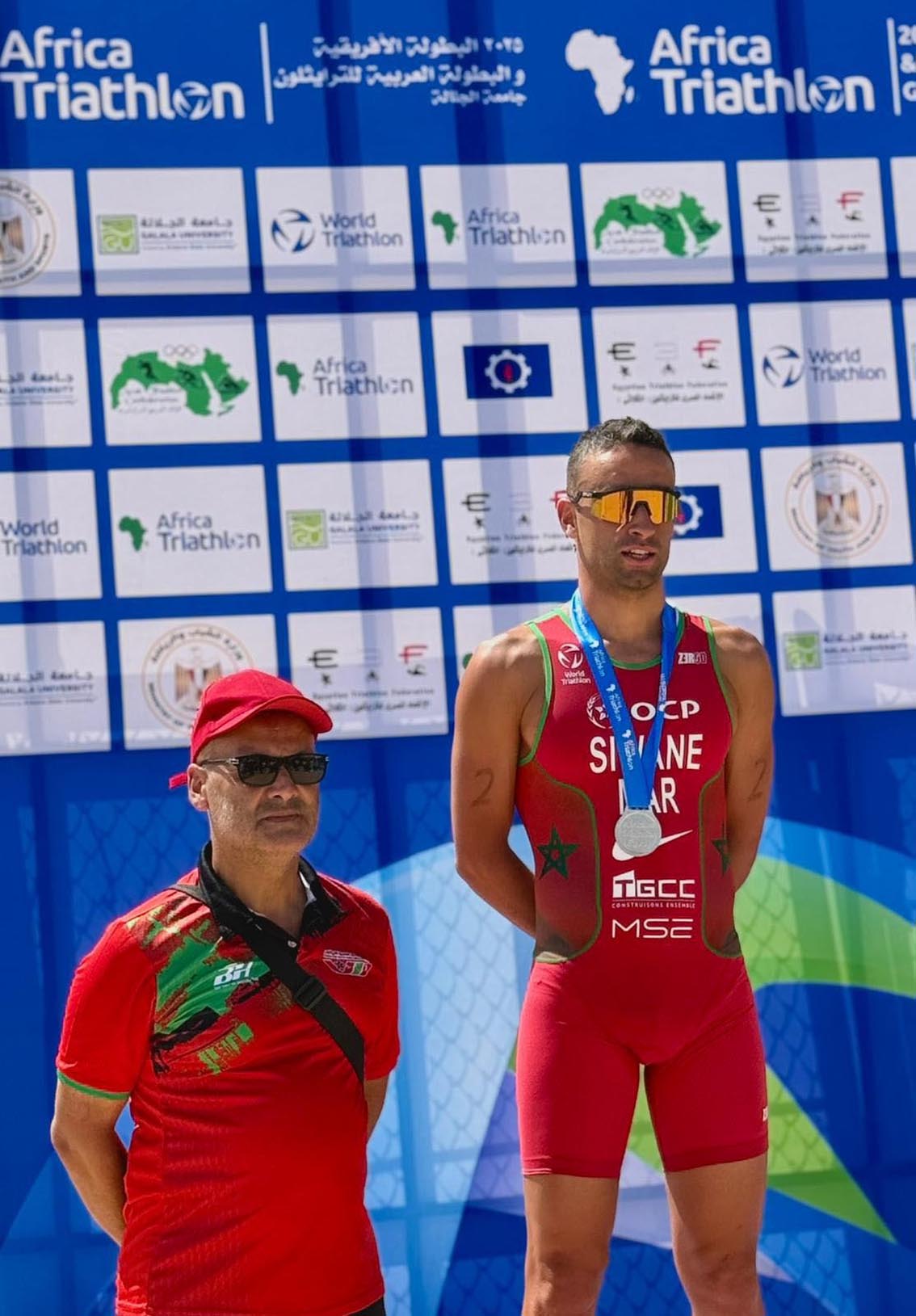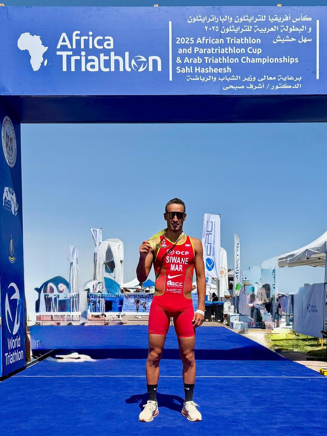 Le triathlète marocain Badr Siwane continue d’écrire l’histoire du sport national. En cette fin de saison 2025, il a enchaîné deux exploits majeurs : une médaille d’argent au Championnat d’Afrique de Triathlon à El Galala, puis l’or au Championnat Pan Arabe à Hurghada, en Égypte. Malgré une chute à vélo, le champion s’est relevé pour franchir la ligne en tête avec un temps de 55’02.