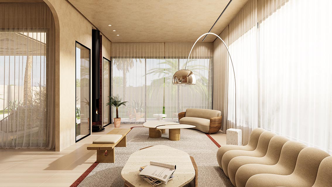 Imaginé par l’architecte Kacem Benhayoun, Botanik Garden adopte une écriture organique où la végétation s’infiltre au cœur de l’habitat, entre patios, jardins intérieurs et terrasses paysagées . L’architecture intérieure, signée Studio Cays, privilégie lignes sobres et matériaux naturels, dans un dialogue subtil entre modernité et intemporalité .
