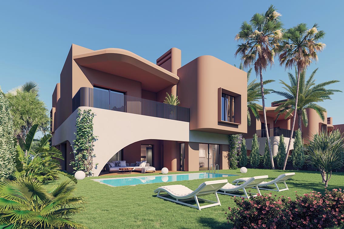 Le domaine propose quatre typologies de villas — Jennah, Noor, Ayla et Lyne — aux surfaces allant de 375 à 530 m², sur des parcelles variées, à partir de 4,6 MMAD . Chaque villa dispose de sa piscine privative et s’inscrit dans un environnement paysager pensé pour prolonger la vie intérieure vers l’extérieur .