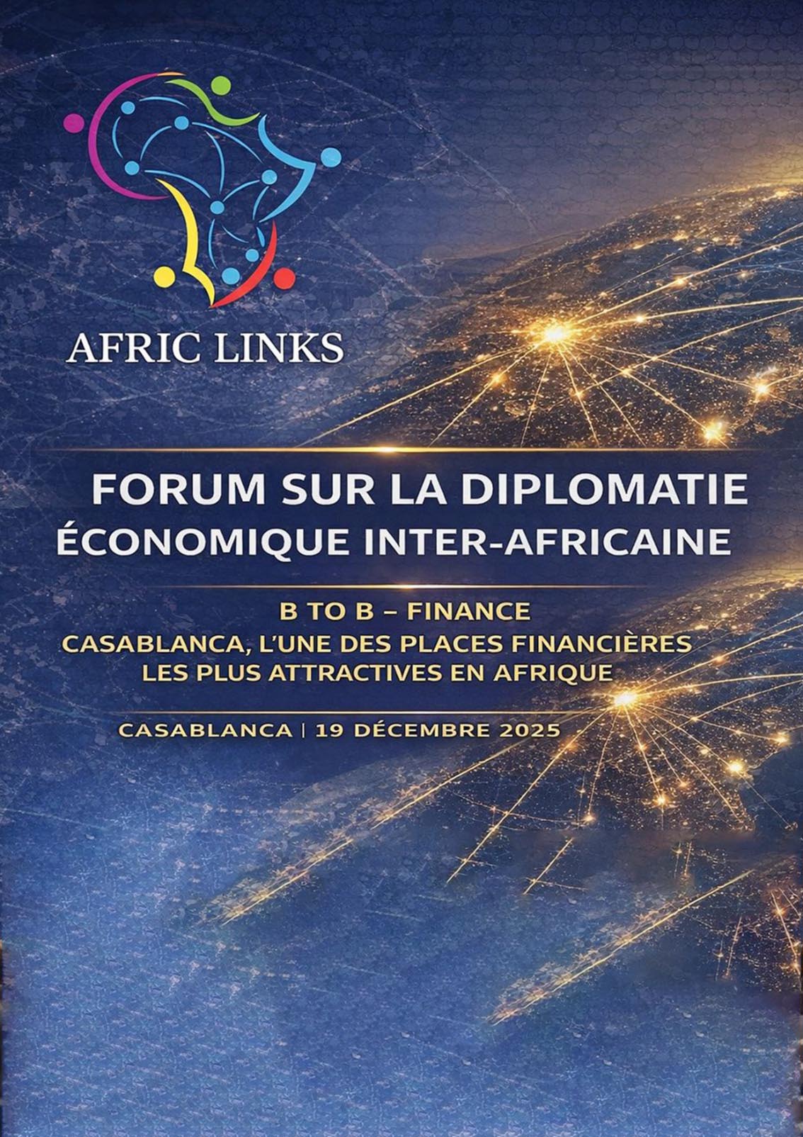 Casablanca s’apprête à accueillir, le 19 décembre 2025, la nouvelle édition du Forum Afric Links – Diplomatie Économique Inter-Africaine, un rendez-vous stratégique consacré à l’intégration des économies africaines, à la structuration de partenariats B2B et à l’accélération des investissements transcontinentaux. Organisé au cœur de l’une des places financières les plus dynamiques du continent, l’événement réunira un écosystème inédit de décideurs publics, d’entreprises, d’institutions financières, de délégations diplomatiques et de plateformes technologiques de premier plan.
