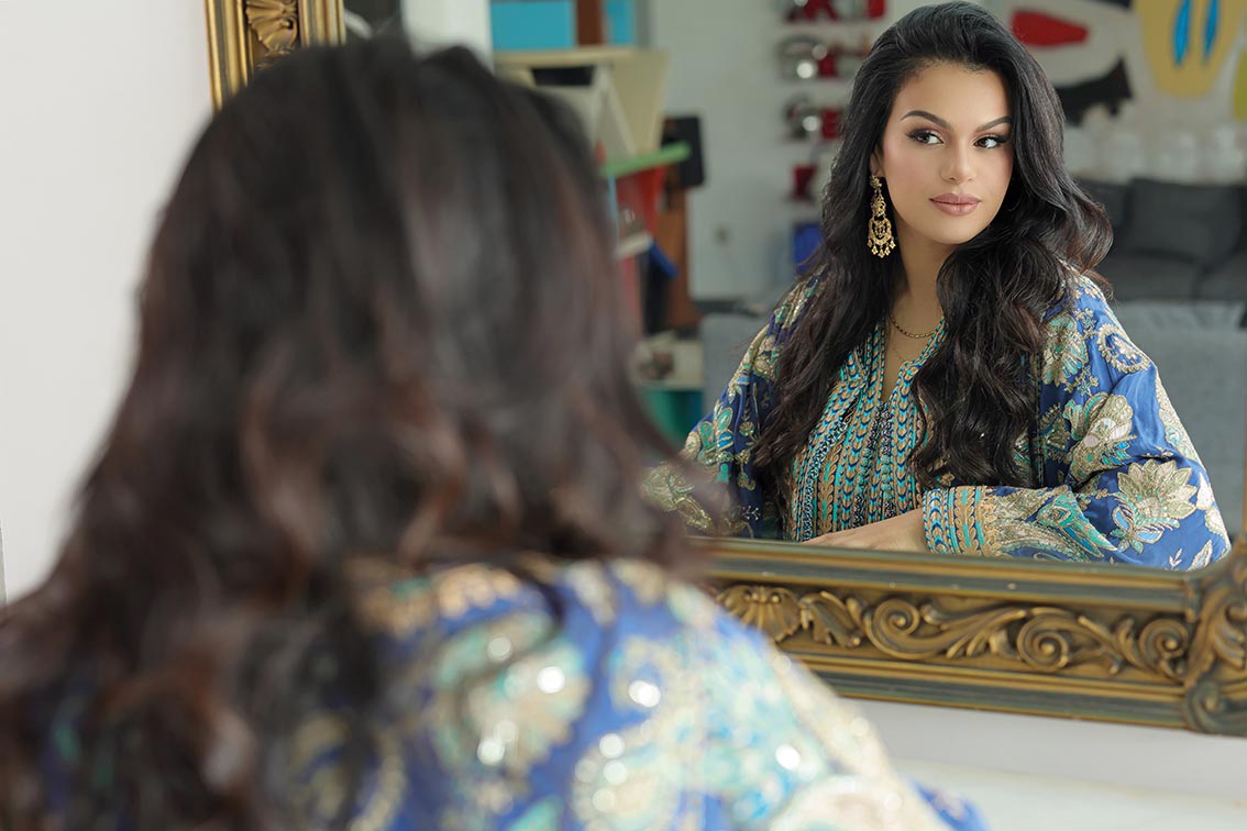 À travers ses silhouettes et ses gestes, Yasmina Olfi raconte une histoire familière à toute une génération. Celle de femmes qui ont grandi avec des traditions fortes et qui les réinventent aujourd’hui avec audace.