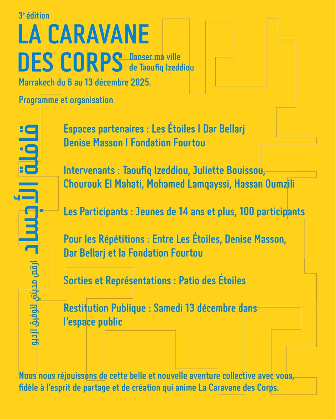 Pour sa troisième édition, La Caravane des Corps – Danser ma Ville, une initiative du chorégraphe aoufiq Izeddiou, revient à Marrakech du 6 au 13 décembre 2025.