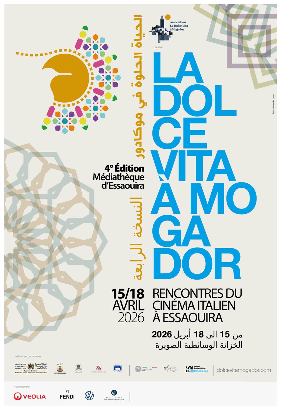 Du 15 au 18 avril 2026, Essaouira accueillera la quatrième édition du festival La Dolce Vita à Mogador, un rendez-vous devenu incontournable pour les amoureux du cinéma italien . Sous les alizés, la cité des vents se transformera en carrefour culturel méditerranéen, célébrant l’excellence du septième art transalpin.