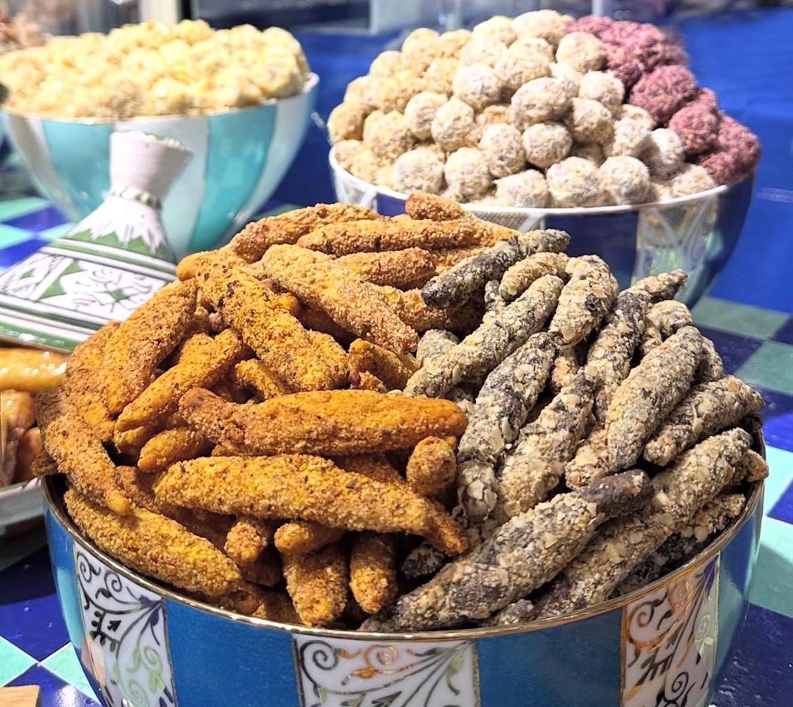 Signature de la maison, les formats miniatures permettent de varier les plaisirs sans renoncer à l’élégance. Certains classiques, comme la ghriba bahla, conservent toutefois leurs dimensions traditionnelles, dans le respect du patrimoine culinaire .