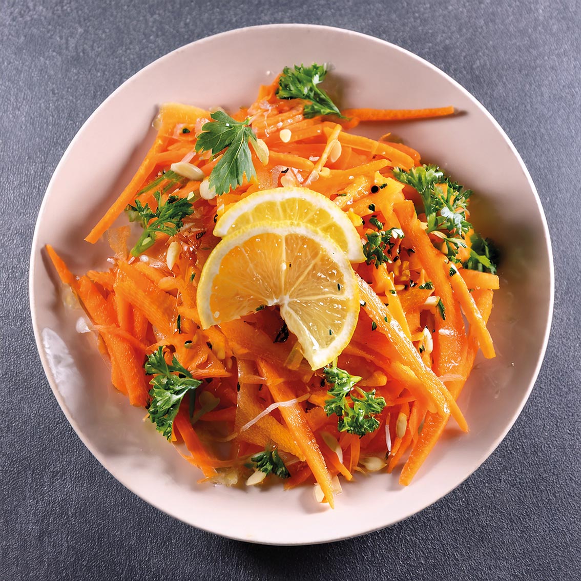 Couper les oranges en rondelles. Ajouter la carotte, le citron et une pincée de cannelle.