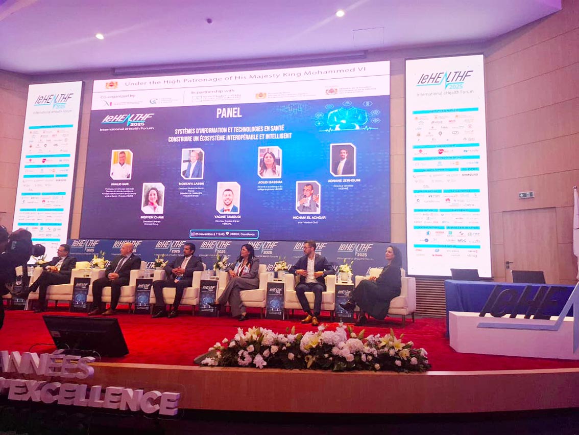Représenté par Mme Meryem Chami lors du Panel stratégique sur les systèmes d’information et l’interopérabilité, le Groupe a rappelé le rôle central du partage fluide des données médicales pour optimiser le parcours patient. Mme Chami a souligné que l’interopérabilité est aujourd’hui un pilier essentiel pour améliorer la qualité des soins, renforcer la coordination entre professionnels et sécuriser les opérations médicales.
