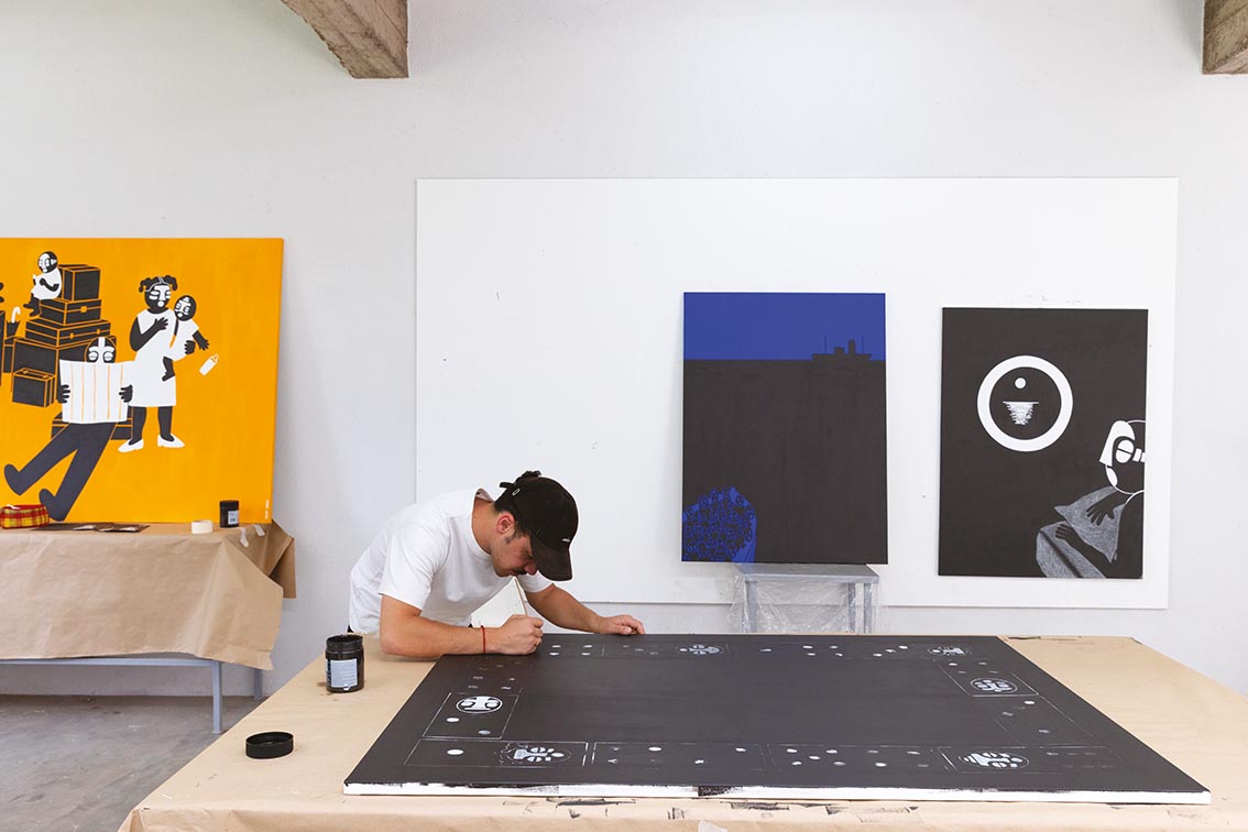 Du 27 septembre au 29 novembre 2025, la Fondation Montresso* présente Pack What You Need, l’exposition de Milan Sanka. L’artiste franco-caribéen y explore l’exil, la mémoire et les héritages croisés, à travers des aplats colorés, des dominos XXL et des scènes satiriques. Une plongée sensible où identité et transmission se dessinent avec poésie et force graphique.