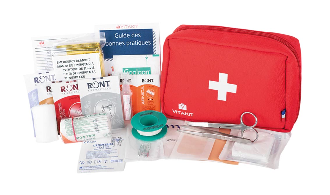 Un kit simple et facile à transporter permet de gérer la majorité des petits incidents. Il doit contenir des compresses stériles et des pansements de différentes tailles pour couvrir les plaies, un antiseptique doux comme la chlorhexidine pour désinfecter sans piquer, et des dosettes de sérum physiologique pour nettoyer une plaie, rincer les yeux ou enlever sable et terre. Une poche de froid instantané ou un pack de gel aide à réduire la douleur et le gonflement après un choc. Une bande cohésive élastique permet de maintenir une compresse ou de soutenir temporairement une articulation. Ciseaux à bouts ronds, gants à usage unique et sparadrap complètent l’essentiel.