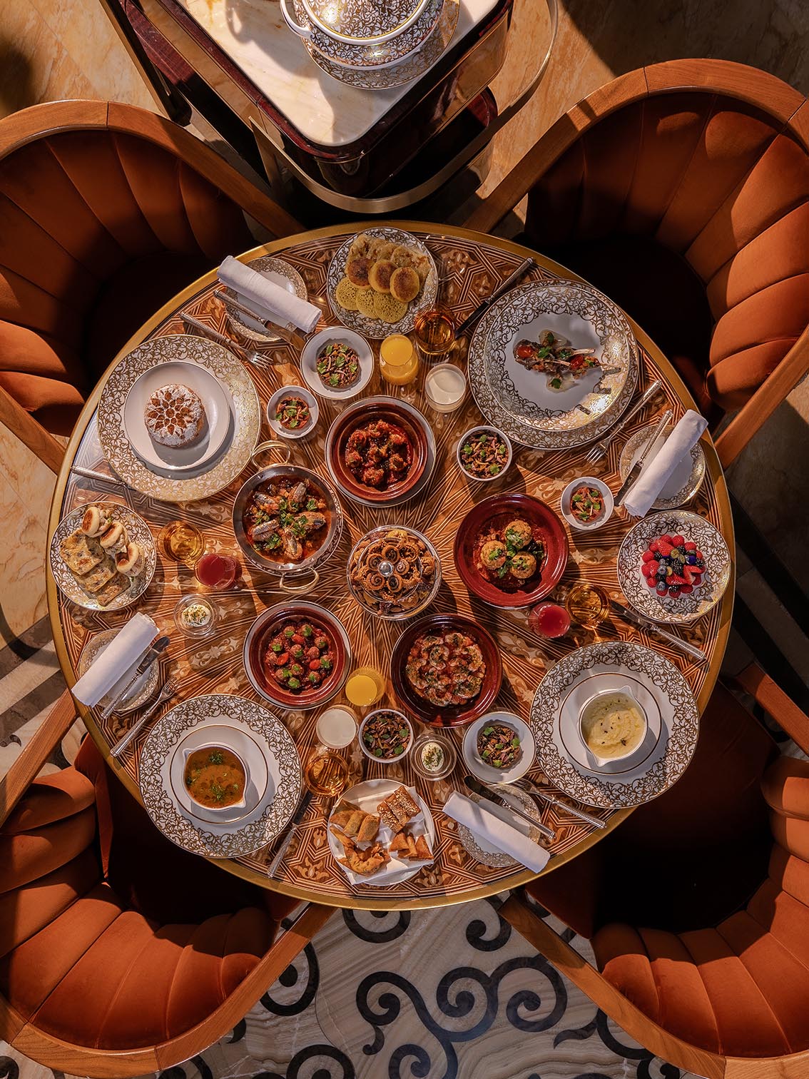 Au cœur de cette saison, La Grande Table Marocaine, orchestrée par le Chef Karim Ben Baba, propose un ftour d’exception conçu comme un voyage à travers les régions du Maroc. Chaque semaine, une destination culinaire différente est mise à l’honneur : de Marrakech à Fès, de Casablanca au Nord, dans une ambiance portée par les mélodies traditionnelles marocaines.