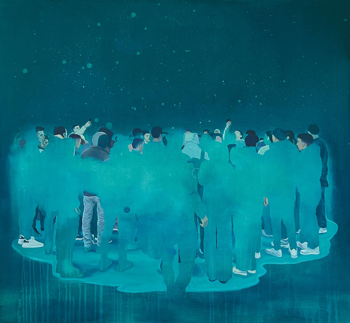 “Une peinture habitée par le silence, où la foule devient miroir de nos solitudes.”