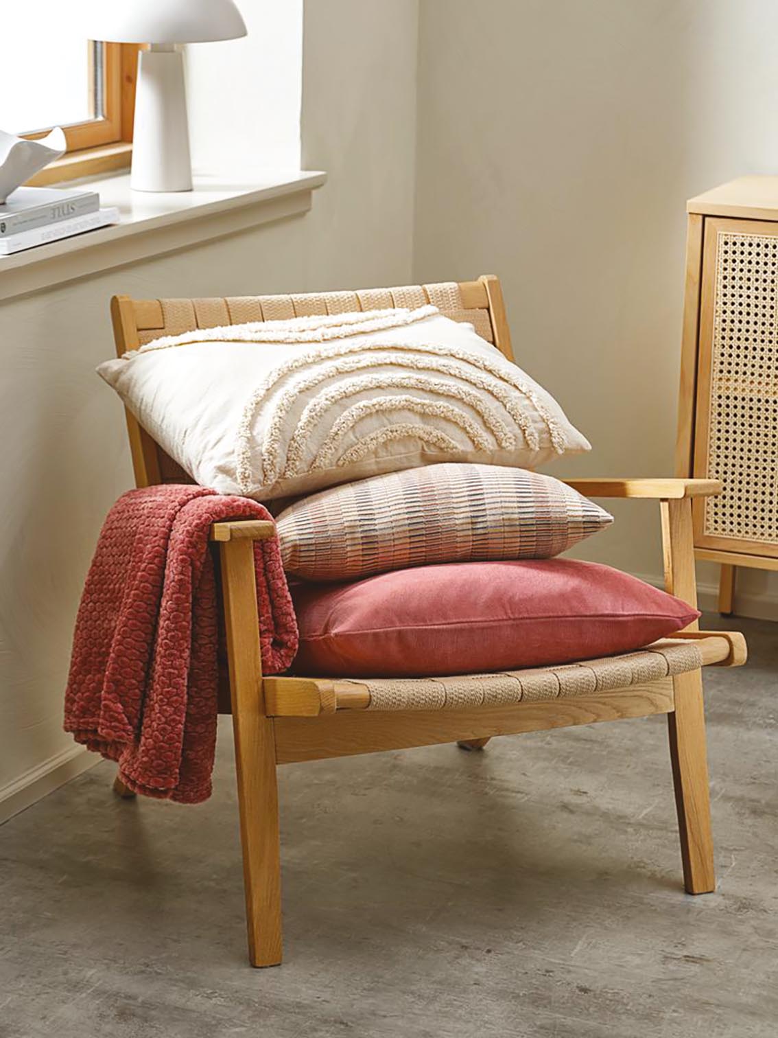 velours, lin lavé ou laine bouclée adoucissent la lumière et réchauffent la pièce.