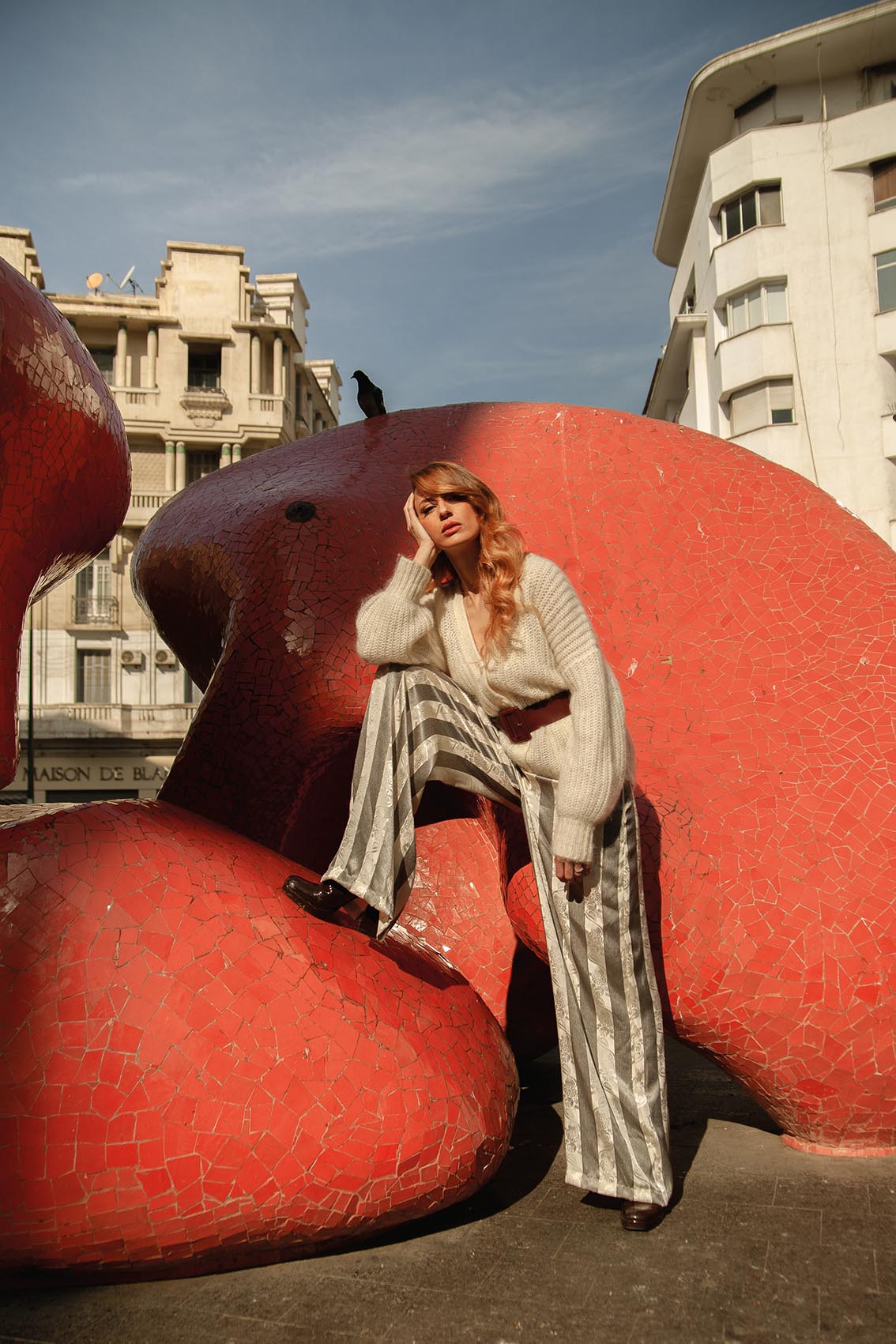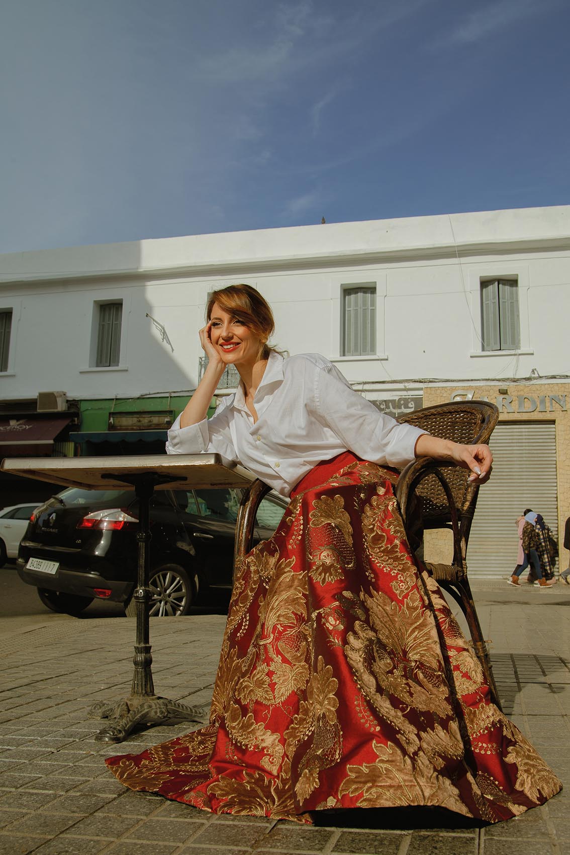 Dans ses créations, la femme n’est jamais figée. Elle marche, elle vit, elle traverse la ville avec confiance et élégance. La jupe Dar El Beida et le pantalon rayé Medina Striped soulignent cette liberté. Salima imagine une féminité fluide, moderne, où le raffinement se conjugue à la spontanéité. Une allure vivante, façonnée par le vent de la corniche et la lumière dorée des fins d’après-midi casaouies.
