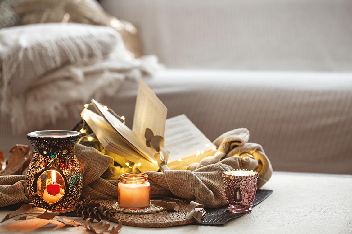 Rituel sensoriel : une bougie boisée, une lampe tamisée, une playlist jazz feutré… et l’automne se transforme en moment suspendu.