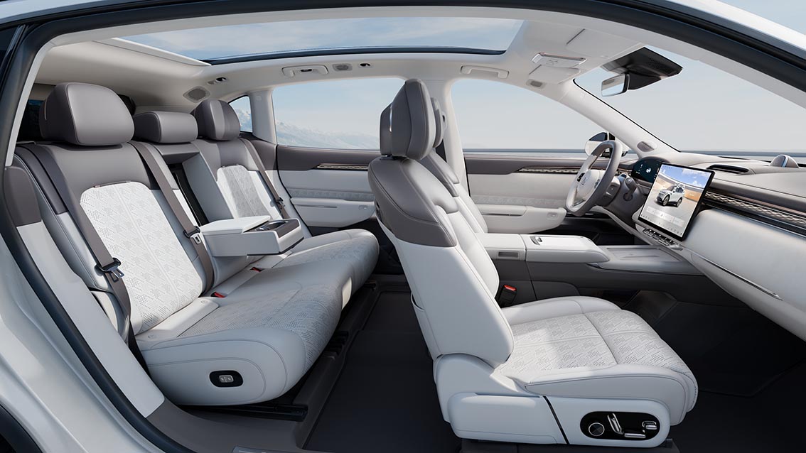 À l’intérieur, le raffinement est omniprésent : selleries haut de gamme, finitions soignées, portes électriques, sièges massants et ventilés sur la version Privilège. L’interface technologique est portée par un écran tactile HD de 16 pouces et un affichage tête haute en réalité augmentée de 36,2 pouces. Un vrai cocon numérique et fonctionnel, agrémenté de 32 espaces de rangement et d’un coffre modulable allant jusqu’à 1978 litres.