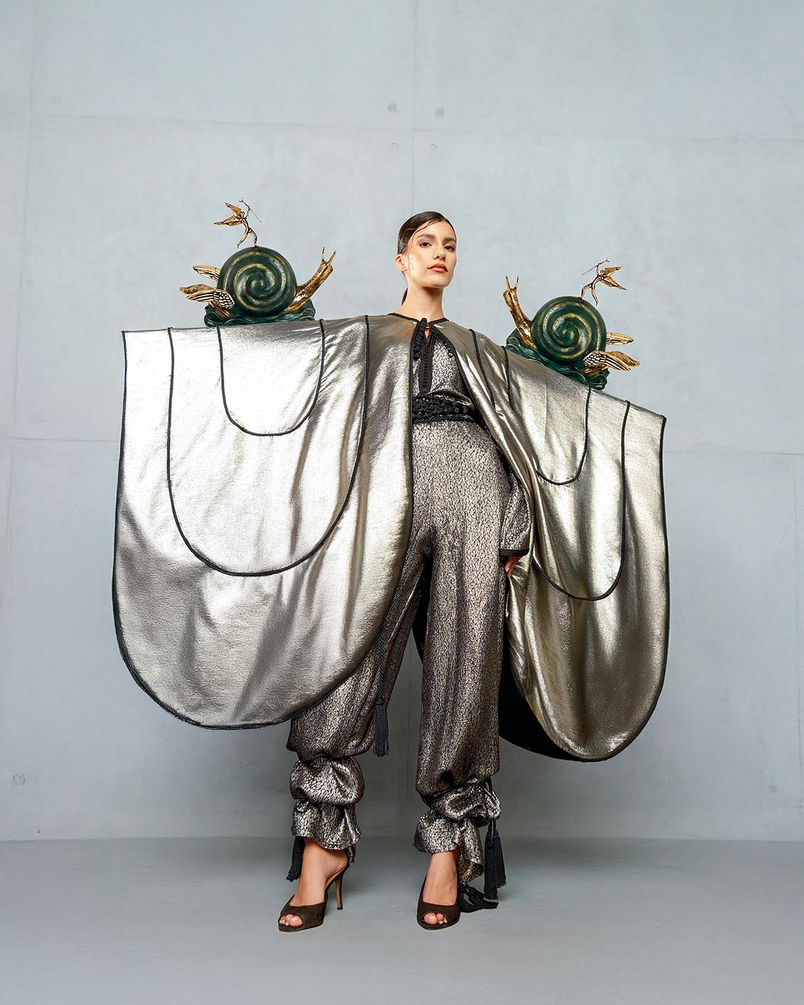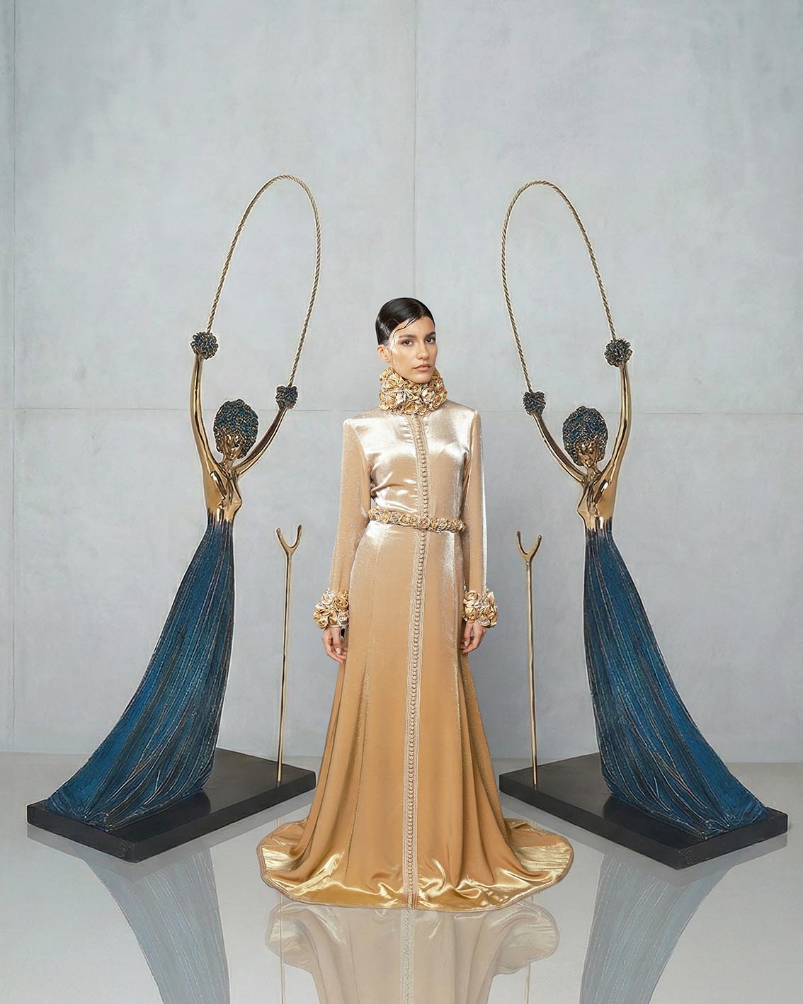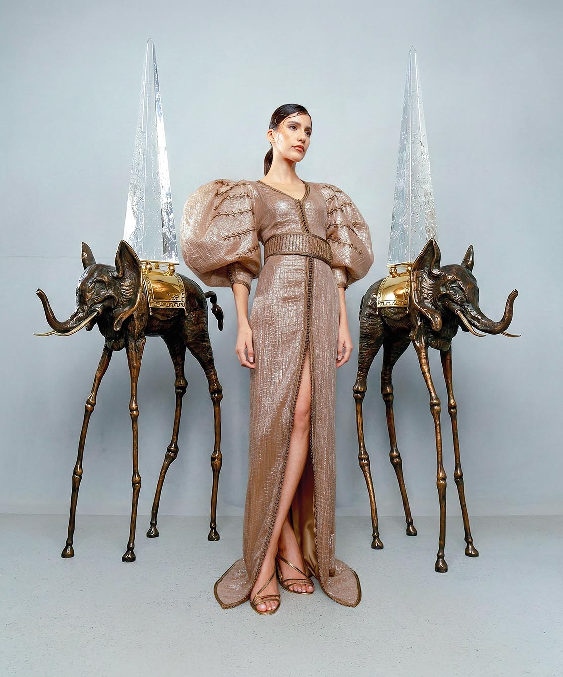 Chaque création porte la signature officielle de Salvador Dalí, une première mondiale pour une créatrice issue du monde arabo-musulman. Entièrement réalisées à la main par des artisans marocains, ces pièces affirment l’ambition d’une couture qui dépasse les frontières, entre tradition et avant-garde.